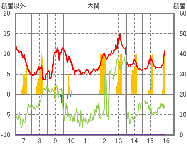 | 日 | 時 | 気温 | 降水 | 風向/風速 | 日照 | 積雪 | 降雪 |