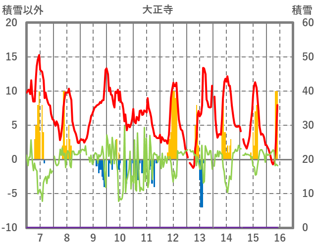 | 日 | 時 | 気温 | 降水 | 風向/風速 | 日照 | 積雪 | 降雪 |