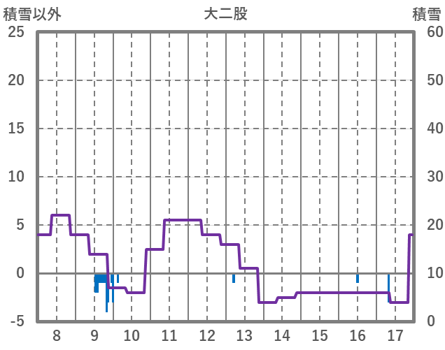 | 日 | 時 | 気温 | 降水 | 風向/風速 | 日照 | 積雪 | 降雪 |