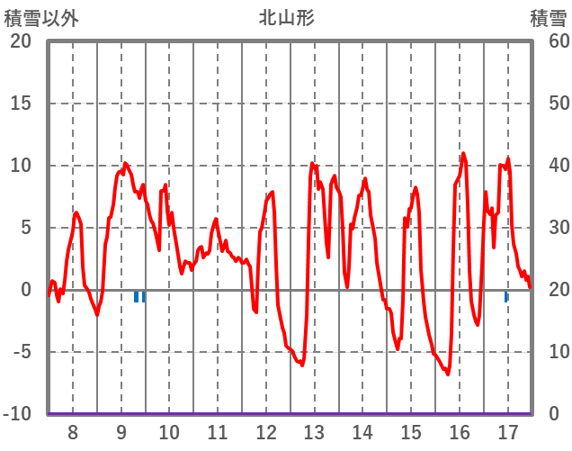 | 日 | 時 | 気温 | 降水 | 風向/風速 | 日照 | 積雪 | 降雪 |