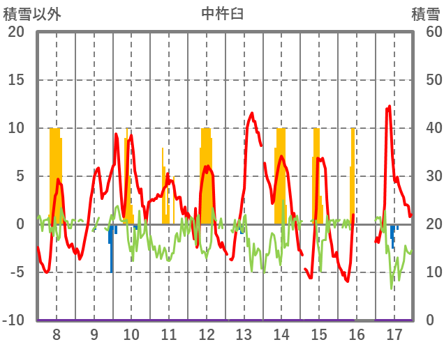 | 日 | 時 | 気温 | 降水 | 風向/風速 | 日照 | 積雪 | 降雪 |