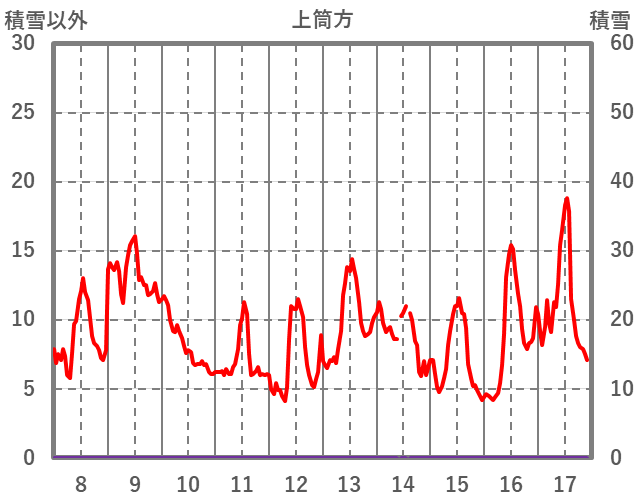| 日 | 時 | 気温 | 降水 | 風向/風速 | 日照 | 積雪 | 降雪 |