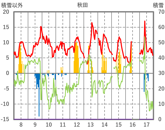 | 日 | 時 | 気温 | 降水 | 風向/風速 | 日照 | 積雪 | 降雪 |