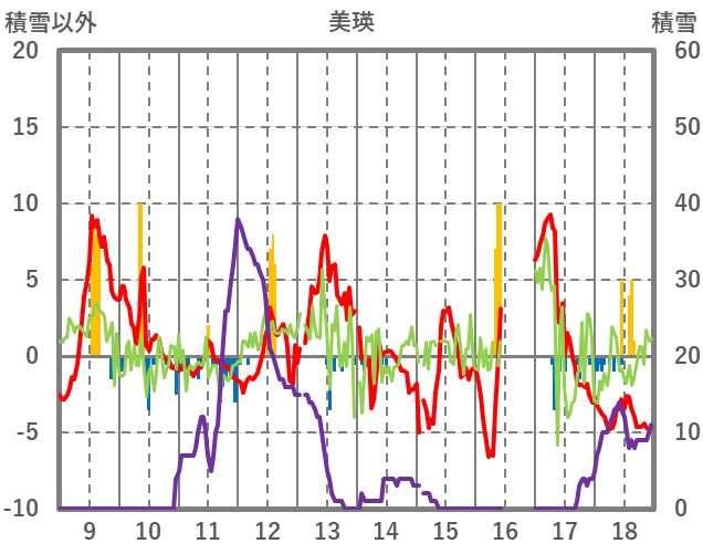 | 日 | 時 | 気温 | 降水 | 風向/風速 | 日照 | 積雪 | 降雪 |