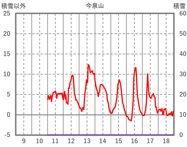 | 日 | 時 | 気温 | 降水 | 風向/風速 | 日照 | 積雪 | 降雪 |