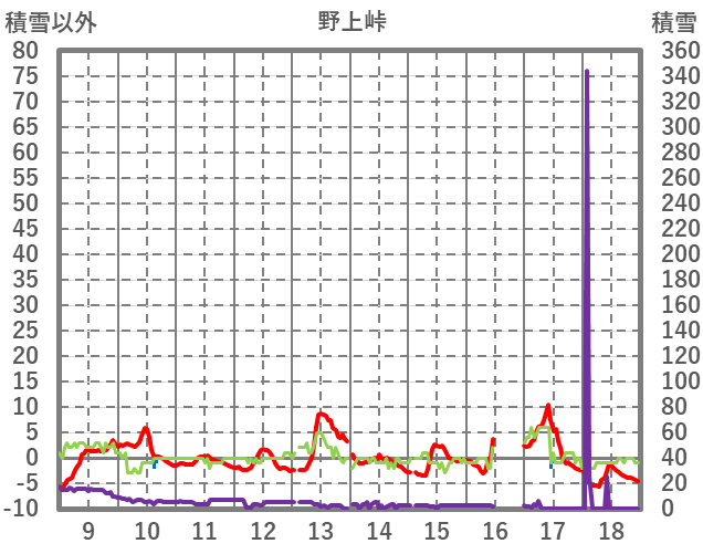 | 日 | 時 | 気温 | 降水 | 風向/風速 | 日照 | 積雪 | 降雪 |