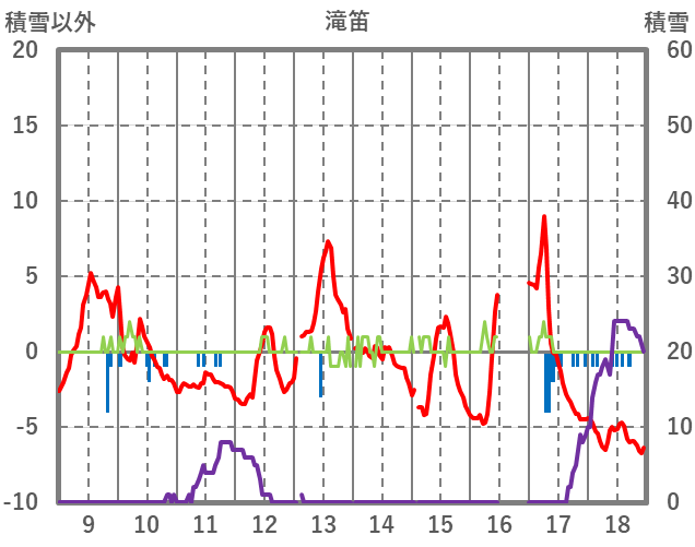 | 日 | 時 | 気温 | 降水 | 風向/風速 | 日照 | 積雪 | 降雪 |