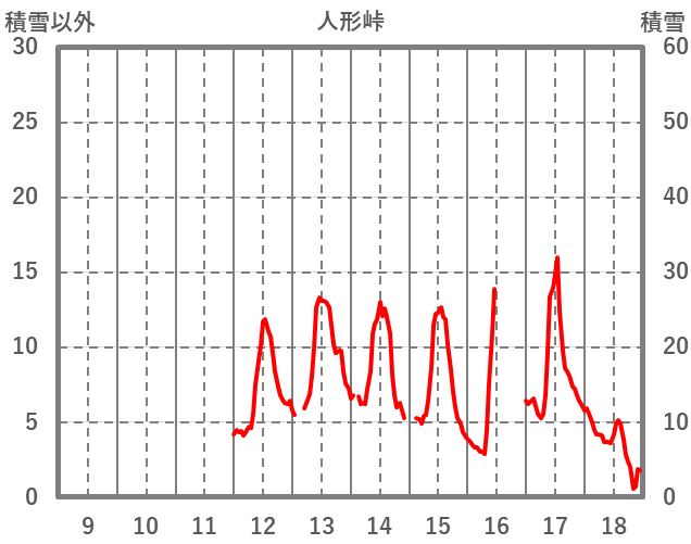 | 日 | 時 | 気温 | 降水 | 風向/風速 | 日照 | 積雪 | 降雪 |