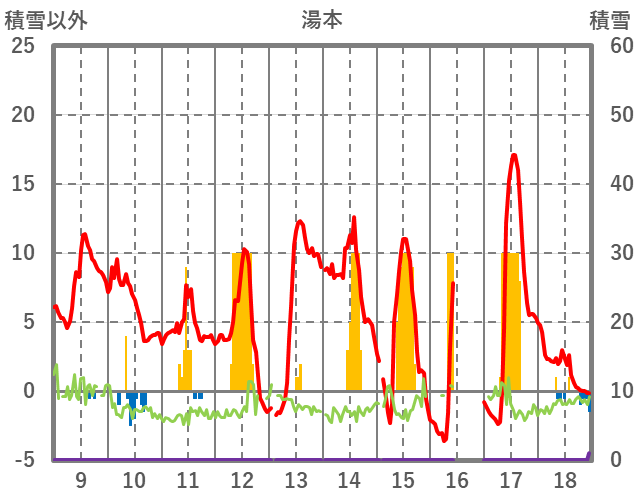 | 日 | 時 | 気温 | 降水 | 風向/風速 | 日照 | 積雪 | 降雪 |