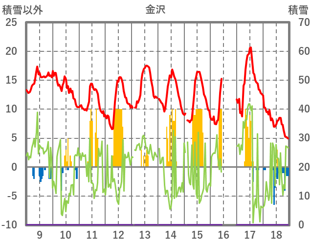 | 日 | 時 | 気温 | 降水 | 風向/風速 | 日照 | 積雪 | 降雪 |