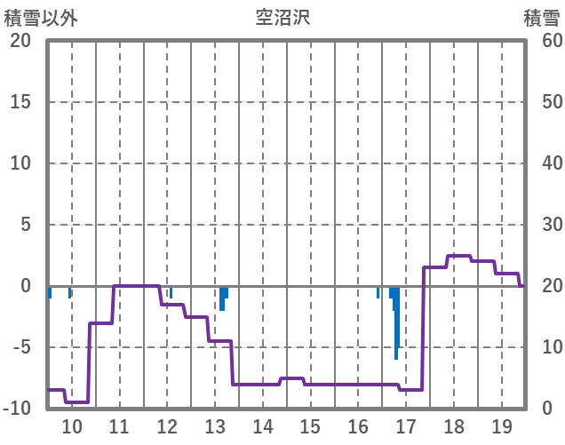 | 日 | 時 | 気温 | 降水 | 風向/風速 | 日照 | 積雪 | 降雪 |