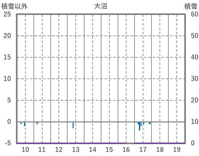 | 日 | 時 | 気温 | 降水 | 風向/風速 | 日照 | 積雪 | 降雪 |