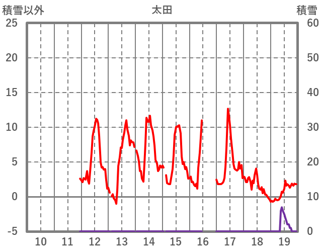 | 日 | 時 | 気温 | 降水 | 風向/風速 | 日照 | 積雪 | 降雪 |