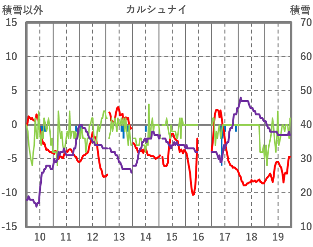 | 日 | 時 | 気温 | 降水 | 風向/風速 | 日照 | 積雪 | 降雪 |