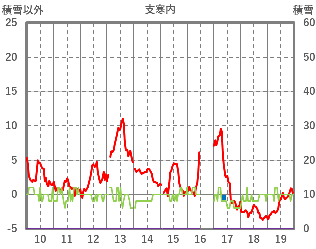 | 日 | 時 | 気温 | 降水 | 風向/風速 | 日照 | 積雪 | 降雪 |