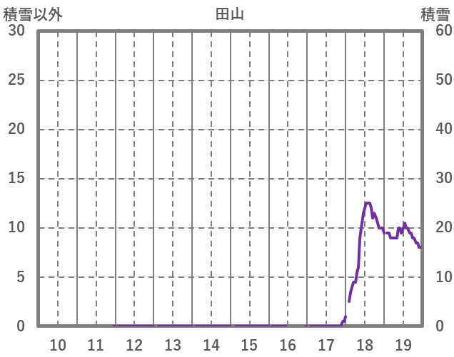 | 日 | 時 | 気温 | 降水 | 風向/風速 | 日照 | 積雪 | 降雪 |