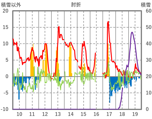 | 日 | 時 | 気温 | 降水 | 風向/風速 | 日照 | 積雪 | 降雪 |