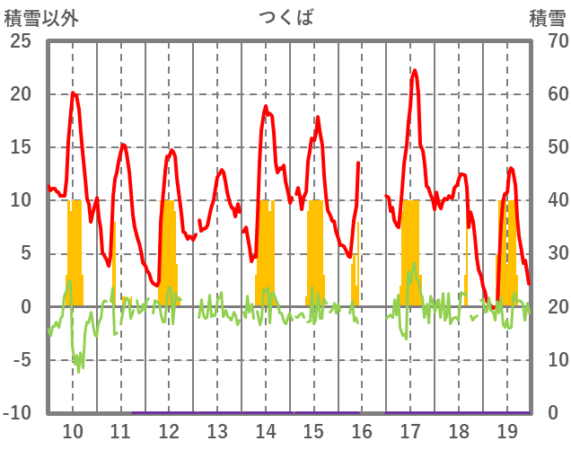 | 日 | 時 | 気温 | 降水 | 風向/風速 | 日照 | 積雪 | 降雪 |