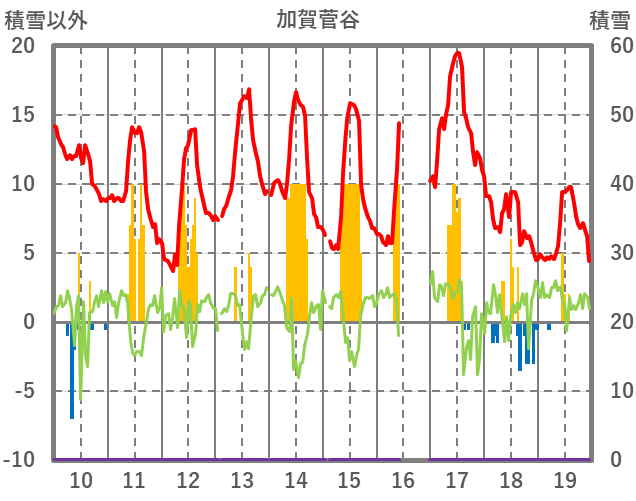 | 日 | 時 | 気温 | 降水 | 風向/風速 | 日照 | 積雪 | 降雪 |