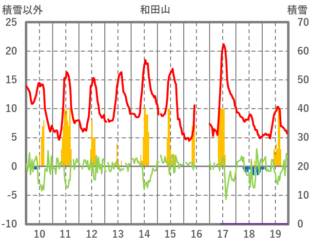 | 日 | 時 | 気温 | 降水 | 風向/風速 | 日照 | 積雪 | 降雪 |
