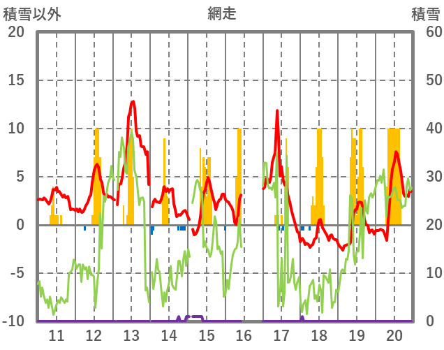 | 日 | 時 | 気温 | 降水 | 風向/風速 | 日照 | 積雪 | 降雪 |