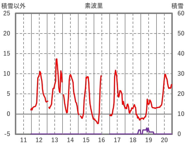 | 日 | 時 | 気温 | 降水 | 風向/風速 | 日照 | 積雪 | 降雪 |