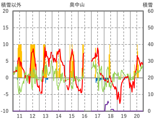 | 日 | 時 | 気温 | 降水 | 風向/風速 | 日照 | 積雪 | 降雪 |