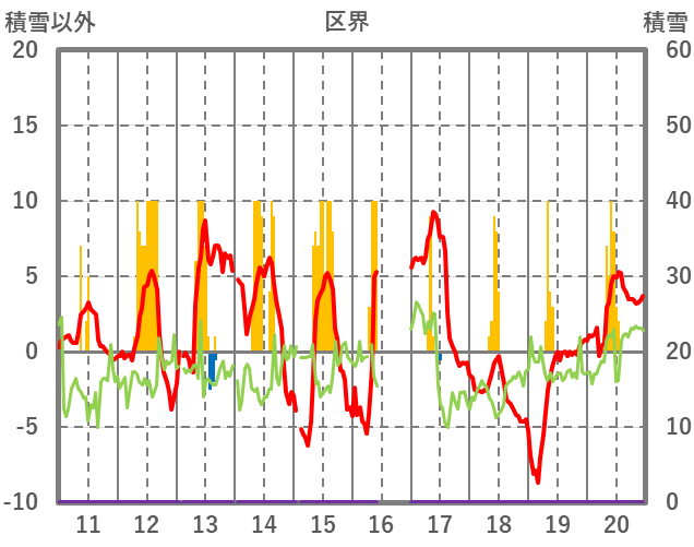 | 日 | 時 | 気温 | 降水 | 風向/風速 | 日照 | 積雪 | 降雪 |