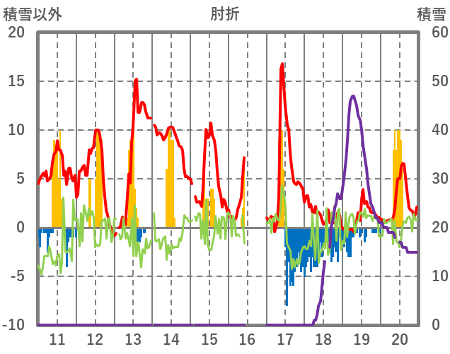 | 日 | 時 | 気温 | 降水 | 風向/風速 | 日照 | 積雪 | 降雪 |