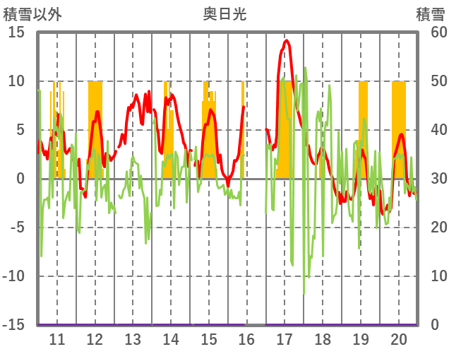 | 日 | 時 | 気温 | 降水 | 風向/風速 | 日照 | 積雪 | 降雪 |