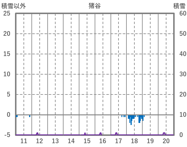 | 日 | 時 | 気温 | 降水 | 風向/風速 | 日照 | 積雪 | 降雪 |