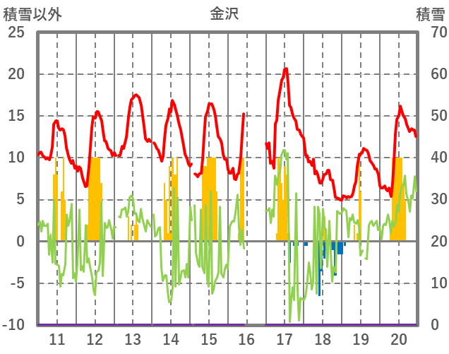 | 日 | 時 | 気温 | 降水 | 風向/風速 | 日照 | 積雪 | 降雪 |