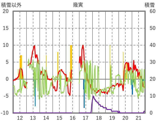 | 日 | 時 | 気温 | 降水 | 風向/風速 | 日照 | 積雪 | 降雪 |
