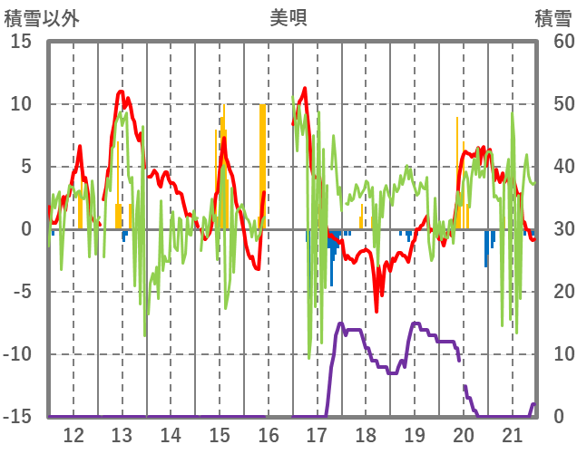 | 日 | 時 | 気温 | 降水 | 風向/風速 | 日照 | 積雪 | 降雪 |