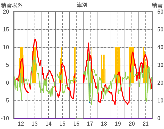 | 日 | 時 | 気温 | 降水 | 風向/風速 | 日照 | 積雪 | 降雪 |