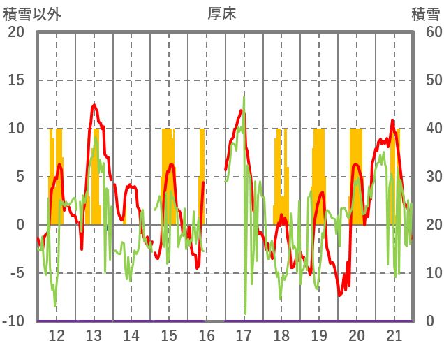 | 日 | 時 | 気温 | 降水 | 風向/風速 | 日照 | 積雪 | 降雪 |