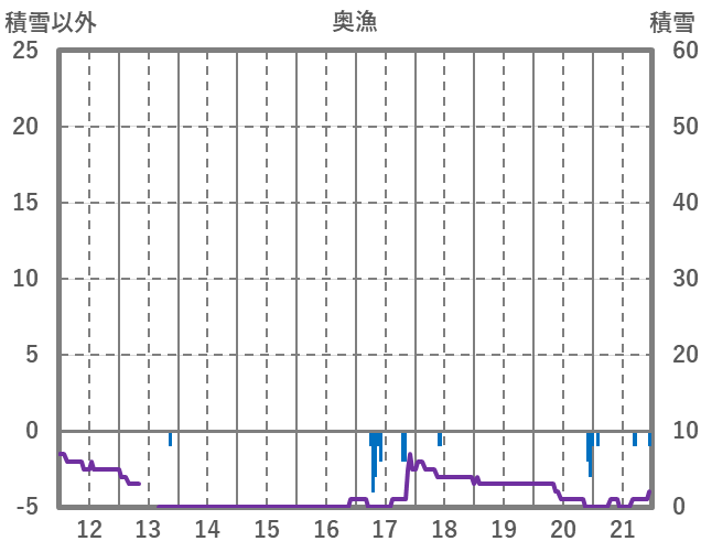 | 日 | 時 | 気温 | 降水 | 風向/風速 | 日照 | 積雪 | 降雪 |