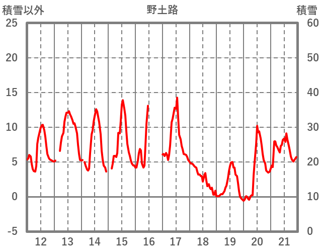 | 日 | 時 | 気温 | 降水 | 風向/風速 | 日照 | 積雪 | 降雪 |