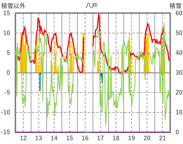 | 日 | 時 | 気温 | 降水 | 風向/風速 | 日照 | 積雪 | 降雪 |