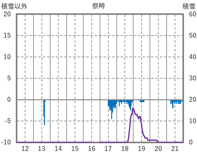 | 日 | 時 | 気温 | 降水 | 風向/風速 | 日照 | 積雪 | 降雪 |