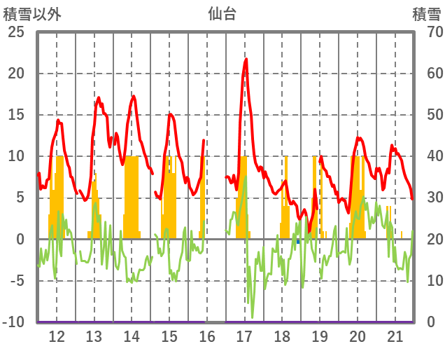 | 日 | 時 | 気温 | 降水 | 風向/風速 | 日照 | 積雪 | 降雪 |