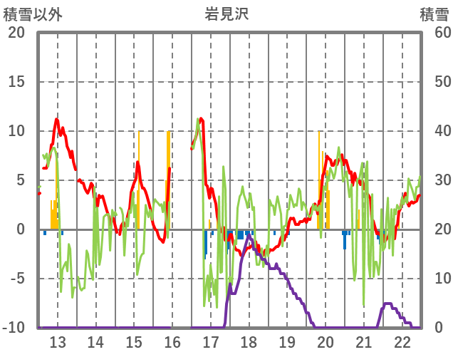 | 日 | 時 | 気温 | 降水 | 風向/風速 | 日照 | 積雪 | 降雪 |
