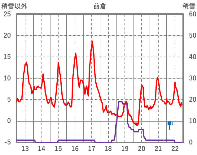 | 日 | 時 | 気温 | 降水 | 風向/風速 | 日照 | 積雪 | 降雪 |