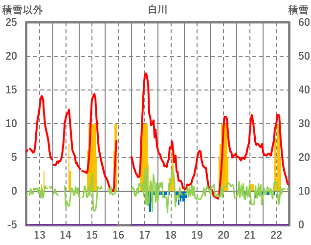 | 日 | 時 | 気温 | 降水 | 風向/風速 | 日照 | 積雪 | 降雪 |