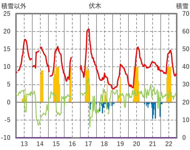 | 日 | 時 | 気温 | 降水 | 風向/風速 | 日照 | 積雪 | 降雪 |