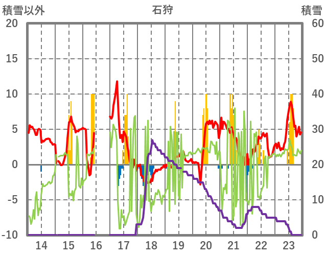 | 日 | 時 | 気温 | 降水 | 風向/風速 | 日照 | 積雪 | 降雪 |