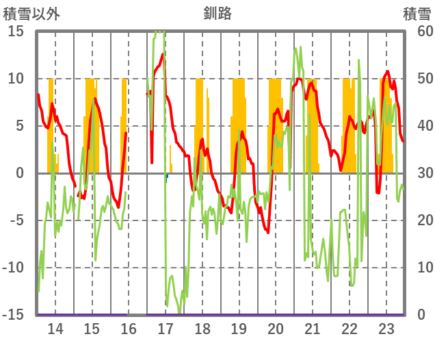 | 日 | 時 | 気温 | 降水 | 風向/風速 | 日照 | 積雪 | 降雪 |