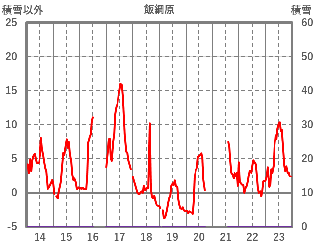 | 日 | 時 | 気温 | 降水 | 風向/風速 | 日照 | 積雪 | 降雪 |