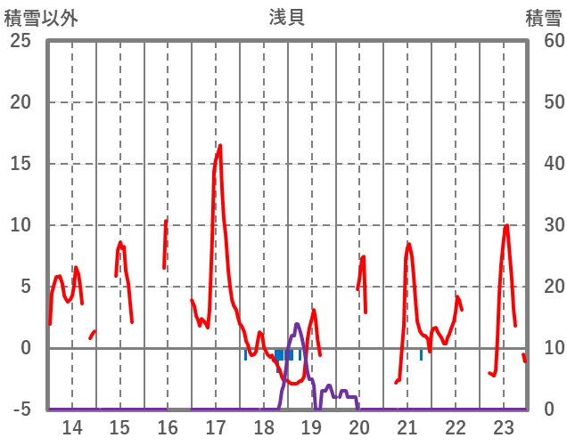 | 日 | 時 | 気温 | 降水 | 風向/風速 | 日照 | 積雪 | 降雪 |