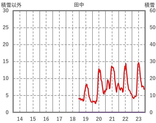 | 日 | 時 | 気温 | 降水 | 風向/風速 | 日照 | 積雪 | 降雪 |